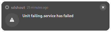 sdshout is a service for Linux systems that creates desktop notifications when background services fail. It's great for finding out that your backups, system updates or other critical functions aren't working. It's on GitHub at https://github.com/mjs/sdshout.